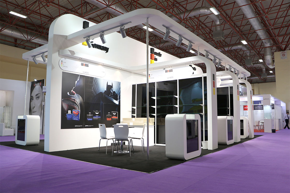 It is an exhibition stand system consisting of modules of different sizes and designs. These modules can be optionally combined to create different stand designs.